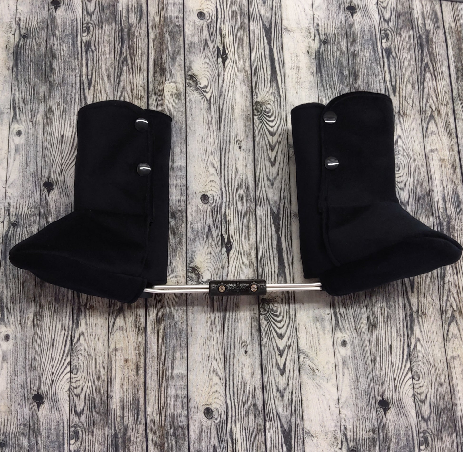 These clubfoot boot covers will fit your child in size 1 or 2 boots. The outside is made with soft, durable Suede while inside is soft, warm fleece. They are warm and cozy for colder weather. They were designed to hold up well with plenty of kicking and can be machine washed and dried. They include a hole in the heel which allows the bar to be attached. They are made with Style A (side snap; making them child proof so your baby cannot remove until the bar is removed first.)